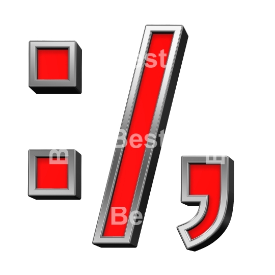 Colon, semicolon, period, comma sign from red with silver frame alphabet set, isolated on white.